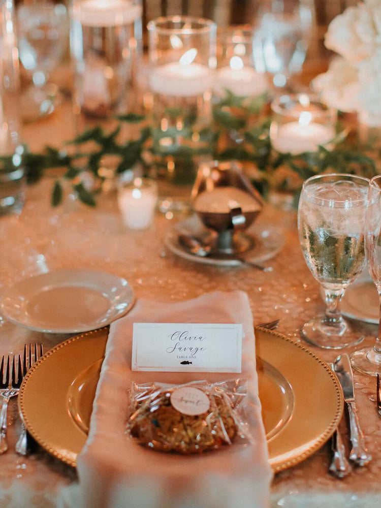 Send your guests home with a sweet memory of your day. Each cookie is individually wrapped and ready to go. Have a custom sticker or label? We'll place it on every cookie for a personal touch.